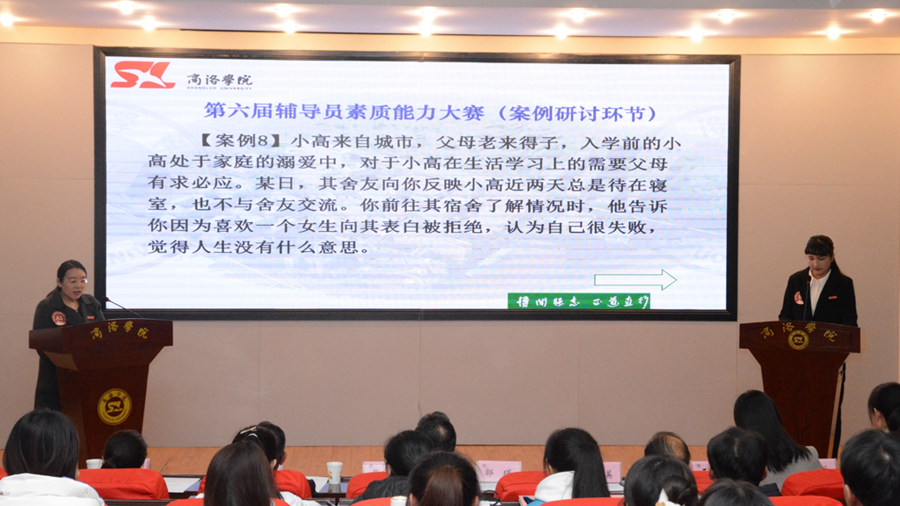 為進(jìn)一步加強(qiáng)我校輔導(dǎo)員隊(duì)伍專業(yè)化、職業(yè)化建設(shè),增強(qiáng)輔導(dǎo)員育人技能本領(lǐng),推動(dòng)思想政治工作高質(zhì)量發(fā)展,提升立德樹人工作成效,我校舉辦了第六屆輔導(dǎo)員素質(zhì)能力大賽。11月29日大賽落下帷幕,副校長郭瑾出席決賽現(xiàn)場。組織部、人事處、學(xué)工部、宣傳部、團(tuán)委負(fù)責(zé)人及陜西省第四屆高校輔導(dǎo)員職業(yè)能力大賽二等獎(jiǎng)獲得者、數(shù)計(jì)學(xué)院學(xué)工辦主任趙萍擔(dān)任決賽評(píng)委。