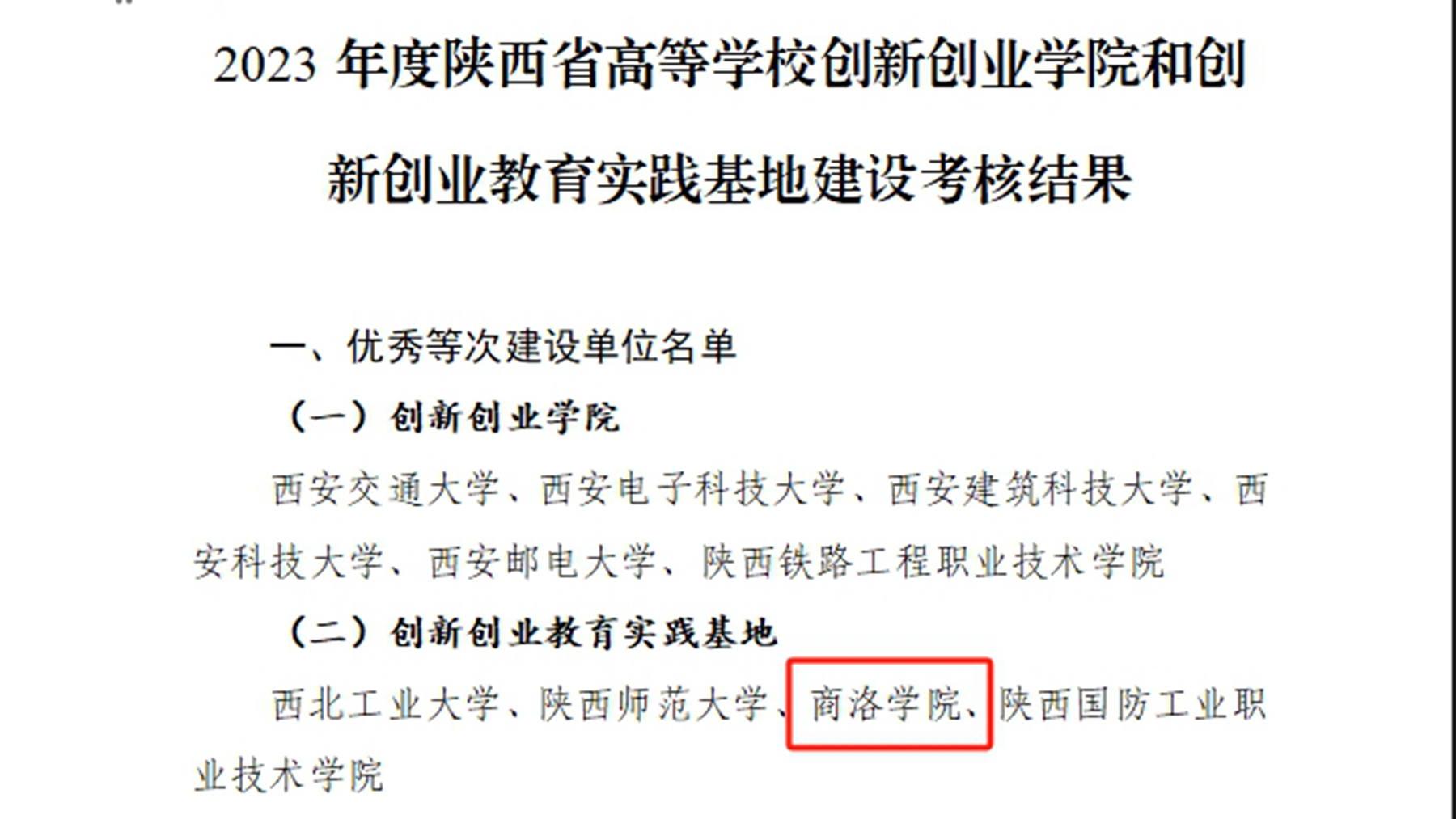 日前,陜西省教育廳公布了2023年度陜西省高等學(xué)校創(chuàng)新創(chuàng)業(yè)學(xué)院和創(chuàng)新創(chuàng)業(yè)教育實(shí)踐基地考核結(jié)果。我校省級(jí)創(chuàng)新創(chuàng)業(yè)教育實(shí)踐基地獲評(píng)考核“優(yōu)秀”等次,是此次全省唯一一所獲評(píng)優(yōu)秀等次的地方應(yīng)用型本科院校。