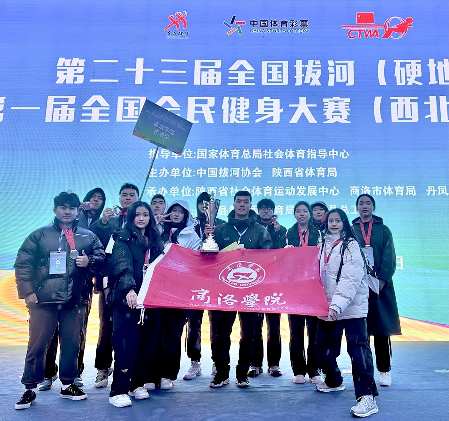 11月15日-17日,第二十三屆全國(guó)拔河(硬地)錦標(biāo)賽暨第一屆全國(guó)全民健身大賽(西北區(qū)·陜西丹鳳站)在商洛丹鳳體育館舉行。商洛學(xué)院選派12名參賽隊(duì)員分別參加高校組混合580公斤級(jí)和900公斤級(jí)比賽,其中在混合900公斤級(jí)比賽中榮獲第一名,在580公斤級(jí)比賽中榮獲第六名。