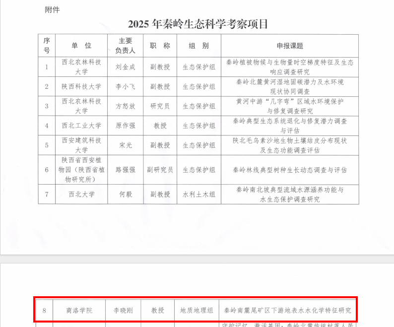 6月27日,由共青團(tuán)陜西省委、省發(fā)展改革委、省林業(yè)局共同主辦的“美麗中國(guó)·青春行動(dòng)”——2025年陜西共青團(tuán)助力秦嶺生態(tài)環(huán)境保護(hù)青年志愿聯(lián)合行動(dòng)主場(chǎng)活動(dòng)在西安市鄠邑區(qū)秦嶺保護(hù)總站舉行,會(huì)上宣布了2025年秦嶺生態(tài)科學(xué)考察項(xiàng)目立項(xiàng)名單,我校建工學(xué)院、秦嶺南麓生態(tài)水文陜西省野外科學(xué)研究站李曉剛博士主持申報(bào)的《秦嶺南麓尾礦庫(kù)下游地表水水化學(xué)特征研究》獲批立項(xiàng),李曉剛和我校青年志愿者代表現(xiàn)場(chǎng)接受了團(tuán)省委秦嶺生態(tài)科學(xué)考察隊(duì)授旗。
