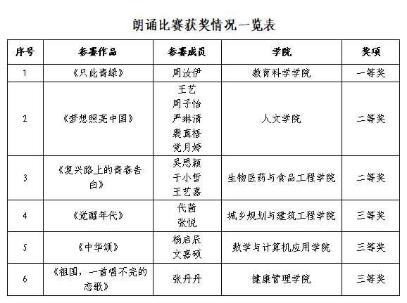 活動中開展了新生朗誦比賽,來自各學(xué)院的2025級新生以飽滿的熱情、真摯的情感朗誦了經(jīng)典作品,贏得了現(xiàn)場觀眾的熱烈掌聲。經(jīng)過激烈角逐,教育科學(xué)學(xué)院選手獲一等獎,人文學(xué)院、生物學(xué)院選手獲二等獎,建工學(xué)院、數(shù)計學(xué)院、健康學(xué)院選手獲三等獎。