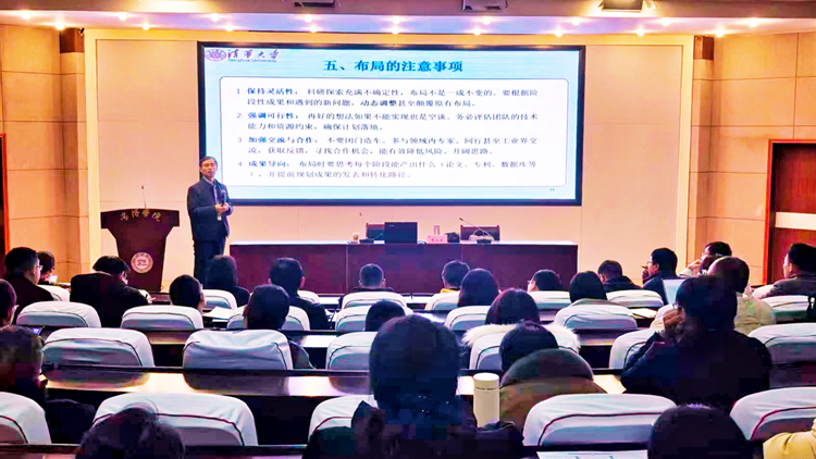 11月19日,清華大學(xué)朱永法教授應(yīng)邀來校,為我校師生作“科研項目的布局與構(gòu)思、計劃與實施”專題報告。化材學(xué)院、電信學(xué)院、生物學(xué)院、建工學(xué)院、數(shù)計學(xué)院、經(jīng)管學(xué)院、健康學(xué)院相關(guān)負(fù)責(zé)人及師生代表150余人聆聽了報告會。