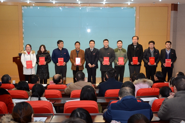 在熱烈的掌聲中,劉建林、魏書堂、彭虎軍分別為獲獎(jiǎng)集體和個(gè)人頒獎(jiǎng)。學(xué)生代表為優(yōu)秀班主任頒獎(jiǎng)。