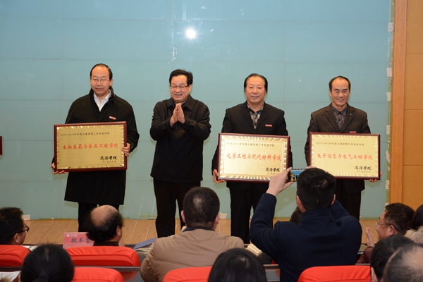 2015年,我校以“三嚴(yán)三實(shí)”專題教育為載體,以黨建為龍頭,以“三早一晚”及學(xué)風(fēng)示范工程為抓手,以大學(xué)生創(chuàng)新創(chuàng)業(yè)為突破口,不斷深化“以學(xué)生為本”的工作理念,圓滿完成了各項(xiàng)工作任務(wù),取得了較好成績(jī)。經(jīng)學(xué)校研究,生物醫(yī)藥與食品工程學(xué)院等3個(gè)學(xué)院被評(píng)為學(xué)生工作考核先進(jìn)集體,經(jīng)濟(jì)與管理學(xué)院等3個(gè)學(xué)院被評(píng)為畢業(yè)生就業(yè)工作先進(jìn)集體,化學(xué)工程與現(xiàn)代材料學(xué)院等3個(gè)學(xué)院被評(píng)為公寓管理工作先進(jìn)學(xué)院,王秀絨等28人被評(píng)為優(yōu)秀班主任,張俊華等8人被評(píng)為學(xué)生管理先進(jìn)個(gè)人,李川川等11人被評(píng)為學(xué)生工作考核優(yōu)秀個(gè)人,敬曉明等14人被評(píng)為公寓管理工作先進(jìn)個(gè)人,張亞強(qiáng)等13人被評(píng)為畢業(yè)生就業(yè)工作先進(jìn)個(gè)人,張善紅等6名輔導(dǎo)員和梁豐等23名班主任的工作日志被評(píng)為優(yōu)秀學(xué)生工作日志,蘇鐵柱等人的17篇論文被評(píng)為學(xué)生工作優(yōu)秀論文。