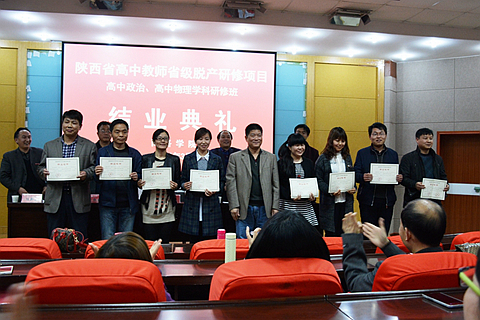 3月28日,我校承辦的陜西省高中教師省級脫產(chǎn)研修項目高中政治學科、高中物理學科研修班結(jié)業(yè)。校黨委副書記、副校長、學校省培領導小組組長范新會,繼續(xù)教育學院院長、校省培領導小組副組長任少儉,后勤保障處副處長敬曉明等出席結(jié)業(yè)典禮。結(jié)業(yè)典禮由繼續(xù)教育學院副院長任新山主持。