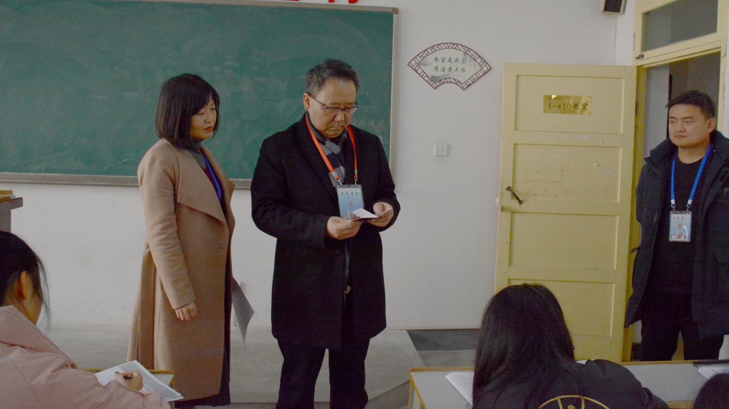 為進(jìn)一步加強(qiáng)我??荚嚬芾恚瑖?yán)肅考風(fēng)考紀(jì),確保2020-2021學(xué)年第一學(xué)期期末考試工作順利進(jìn)行,1月4日—5日,校黨委書(shū)記龍治剛、校長(zhǎng)范新會(huì)、黨委副書(shū)記劉勇在教務(wù)處負(fù)責(zé)人的陪同下,分別深入北新街校區(qū)及丹江校區(qū)各考場(chǎng)檢查工作,實(shí)地了解考場(chǎng)環(huán)境秩序、疫情防控措施落實(shí)、學(xué)生考試狀態(tài)等情況,聽(tīng)取相關(guān)工作匯報(bào)。