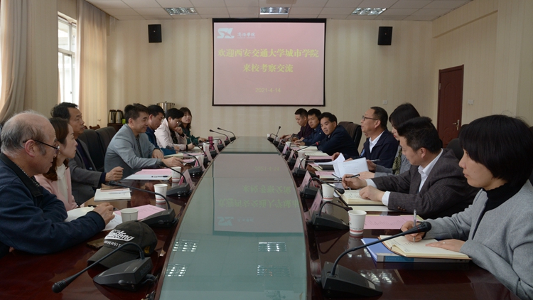 4月14日,西安交通大學(xué)城市學(xué)院副院長(zhǎng)朱旭帶領(lǐng)科研處、管理系相關(guān)負(fù)責(zé)人來(lái)我??疾旖涣?。副校長(zhǎng)劉寶盈熱情接待了朱旭一行。雙方圍繞人才培養(yǎng)、教學(xué)管理及科研管理與服務(wù)工作進(jìn)行了座談。教務(wù)處、科技處、經(jīng)濟(jì)管理學(xué)院相關(guān)負(fù)責(zé)人參加座談。