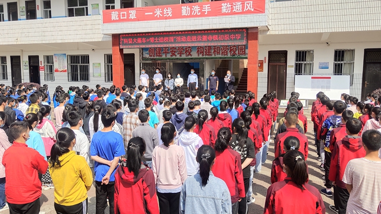 5月24日,2022年商洛市文化科技衛(wèi)生“三下鄉(xiāng)”集中示范暨第30屆“科技之春”宣傳月活動(dòng)啟動(dòng)儀式在鎮(zhèn)安縣云蓋寺鎮(zhèn)舉行,市委常委、市委宣傳部部長(zhǎng)、市文化科技衛(wèi)生“三下鄉(xiāng)”活動(dòng)領(lǐng)導(dǎo)小組組長(zhǎng)賈永安出席活動(dòng)并講話。云蓋寺鎮(zhèn)中學(xué)師生、各界群眾代表參加啟動(dòng)儀式。我校“流動(dòng)科技館”師生為云蓋寺鎮(zhèn)中學(xué)等學(xué)校帶來了豐富多彩的科普活動(dòng)。