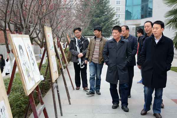 為豐富和創(chuàng)新學(xué)生工作的內(nèi)容與形式,探索藝術(shù)生思想政治教育的有效途徑,本學(xué)期來,藝術(shù)學(xué)院黨總支組織、策劃了學(xué)生主題思想教育系列活動。12月7日,活動成果在我校1號教學(xué)樓走廊和北院中心花園展出。校黨委副書記、副校長范新會,黨委副書記彭虎軍前往參觀,對藝術(shù)學(xué)院將學(xué)生創(chuàng)新實踐與思想政治教育工作結(jié)合的做法給予高度評價。黨委宣傳部、學(xué)生處、發(fā)展規(guī)劃與合作交流處、藝術(shù)學(xué)院黨總支負責(zé)人陪同參觀。