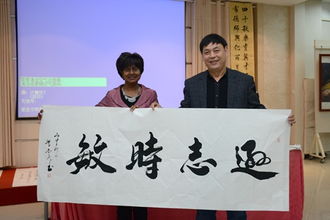 報告會結束后,劉寶盈陪同克里斯汀參觀了我校特色展廳。