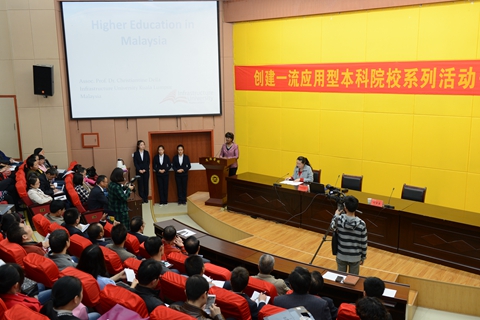 10月22日上午,馬來西亞吉隆坡建設大學校長克里斯汀來我校為師生作題為《馬來西亞高等教育概況及研究》的學術報告。各二級學院負責人、師生代表及吉隆坡建設大學來我校交流學生參加報告會。報告會由副校長劉寶盈主持。