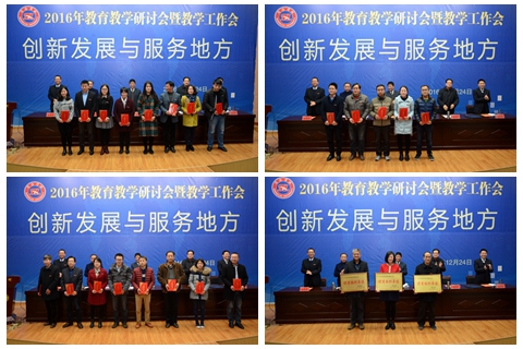 大會(huì)對(duì)我校2016年度優(yōu)秀教案及優(yōu)秀電子課件、教育實(shí)習(xí)優(yōu)秀指導(dǎo)教師和優(yōu)秀實(shí)習(xí)生、教育教學(xué)研討會(huì)優(yōu)秀論文及優(yōu)秀組織單位、青年教師教學(xué)技能競(jìng)賽優(yōu)勝者、校級(jí)以上本科教學(xué)工程項(xiàng)目及教學(xué)名師進(jìn)行了表彰。副校長(zhǎng)魏書堂宣讀了表彰決定。在熱烈的掌聲中,出席大會(huì)的校領(lǐng)導(dǎo)為受表彰的集體和個(gè)人代表頒發(fā)了獲獎(jiǎng)證書。陜西省第十屆教學(xué)名師、化材學(xué)院院長(zhǎng)周春生,2016年青年教師教學(xué)技能大賽一等獎(jiǎng)獲得者李亞文分別作了發(fā)言。