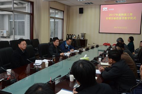 劉寶盈在講話中從經(jīng)費(fèi)到賬、平臺建設(shè)、項(xiàng)目成果、學(xué)術(shù)活動等方面回顧總結(jié)了我校2016年科技工作情況。他指出,2017年要按照學(xué)校整體安排,在科研平臺、科研團(tuán)隊(duì)、研究生聯(lián)合培養(yǎng)、高水平科研立項(xiàng)、科研經(jīng)費(fèi)、重大科研成果和學(xué)術(shù)活動等方面取得新的突破。簽訂年度科技工作專項(xiàng)任務(wù)書是科技工作考核的重要環(huán)節(jié),各二級教學(xué)部門要積極落實(shí)項(xiàng)目任務(wù),以科研經(jīng)費(fèi)為牽引,積極爭取重大科研項(xiàng)目的立項(xiàng)、完成及科技成果轉(zhuǎn)化,促進(jìn)我校科技工作水平再上新臺階。