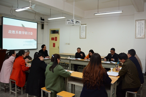 為了提高教師的教學(xué)水平,推進(jìn)教學(xué)改革,提升教學(xué)效果,人文學(xué)院政教系在總結(jié)2016年主題教研活動的基礎(chǔ)上,組織開展了以“如何發(fā)揮學(xué)生的主體性”為主題的2017年教研活動。今年的教研活動自第一周開始,持續(xù)五周時間,政教系全體專兼職教師參加了教研活動。