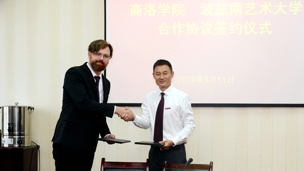 沃伊特和馬修斯分別介紹了波蘭政治、經(jīng)濟(jì)、文化和波蘭高等教育情況及波茲南藝術(shù)大學(xué)辦學(xué)特色和優(yōu)勢(shì),他們表示在建立“戰(zhàn)略合作伙伴”關(guān)系的基礎(chǔ)上將與我校美術(shù)學(xué)、建筑工程等專業(yè)開展開務(wù)實(shí)合作,期待有更多的商洛學(xué)院師生通過交流研修、學(xué)分互認(rèn)、假期實(shí)踐等項(xiàng)目赴波茲南藝術(shù)大學(xué)學(xué)習(xí),了解波蘭,體驗(yàn)波蘭。