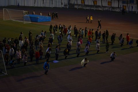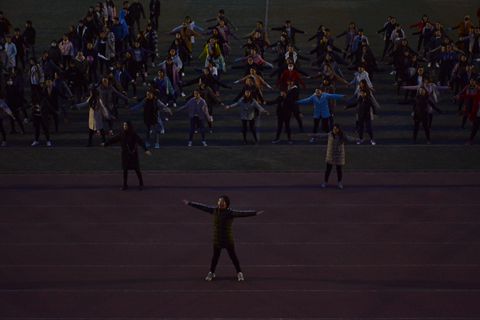 天還沒亮,體育場上已經熱鬧起來,晨跑和廣播體操驅走了寒氣,讓大家精神煥發(fā)。