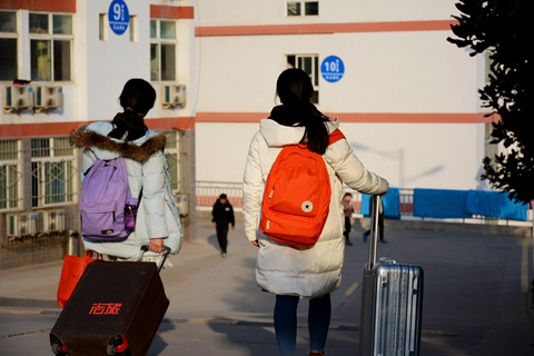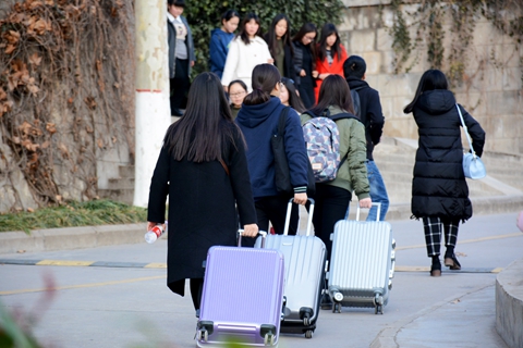 同學們提著行李,回到了心愛的校園,開始新學期的生活。