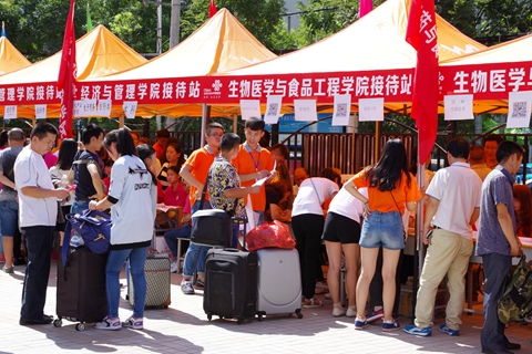 迎新期間,我校精心部署、周密安排,各部門、各二級(jí)學(xué)院緊密配合,確保整個(gè)迎新工作順利進(jìn)行。為方便外省市新生順利入校,學(xué)校在火車站、汽車站和校門口等地方分別設(shè)立迎新接待點(diǎn),校車一路暢通,日夜不間歇接送,為新生及家長(zhǎng)們提供便利服務(wù)。校內(nèi)設(shè)立了新生咨詢處、行李寄存處、公安執(zhí)勤處、醫(yī)療服務(wù)處、家長(zhǎng)休息區(qū)、繳費(fèi)處、戶籍辦理處、軍訓(xùn)服裝發(fā)放處、銀行卡與通信卡辦理處等場(chǎng)點(diǎn),為家境貧困的學(xué)生開放了“綠色通道”,辦理助學(xué)貸款。各個(gè)路口醒目位置都設(shè)置有迎新指示牌,志愿者們穿梭其中,為新生提供各類咨詢和幫助。