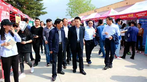 在學(xué)生處、團委等部門負(fù)責(zé)人的陪同下,彭虎軍與用人單位領(lǐng)導(dǎo)、參會學(xué)生親切交流,了解用人單位人才需求、招聘情況和學(xué)生應(yīng)聘求職情況;同時要求各相關(guān)部門要認(rèn)真、熱情、周到做好接待服務(wù)工作,搭建高質(zhì)量就業(yè)平臺。