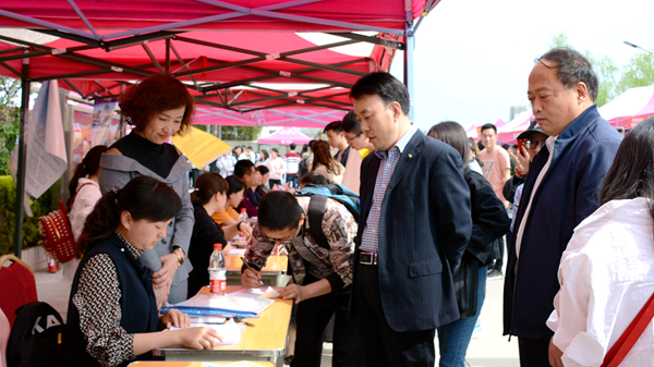 招聘會上,來自江蘇、新疆、北京、上海、山西等地的161家省內(nèi)外企事業(yè)單位、學(xué)校及培訓(xùn)機構(gòu)進行了現(xiàn)場洽談?wù)衅?。各用人單位提供的就業(yè)崗位涉及基礎(chǔ)教育、應(yīng)用化工、生物醫(yī)藥、工程管理、電子技術(shù)、財務(wù)會計等諸多行業(yè)領(lǐng)域,共計8800余個招聘崗位,基本覆蓋我校畢業(yè)生所學(xué)專業(yè)。在前期的大力宣傳和有效組織下,我校應(yīng)往屆畢業(yè)生及來自省內(nèi)7所高校的畢業(yè)生共計3000多人參加了招聘會。