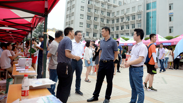 6月25日,我校舉辦2018年“校園開(kāi)放日暨高考招生咨詢會(huì)”。我校與浙江大學(xué)、西安交通大學(xué)、西北工業(yè)大學(xué)、西北農(nóng)林科技大學(xué)、西安電子科技大學(xué)、陜西師范大學(xué)等30余所省內(nèi)外高?,F(xiàn)場(chǎng)為廣大高考考生及家長(zhǎng)提供了全方位的招考咨詢服務(wù)。活動(dòng)吸引了大批學(xué)生及家長(zhǎng)前來(lái)咨詢。副校長(zhǎng)劉勇檢查指導(dǎo)現(xiàn)場(chǎng)工作,黨委委員、教務(wù)處處長(zhǎng)李超,黨委委員、建工學(xué)院院長(zhǎng)楊存典也來(lái)到活動(dòng)現(xiàn)場(chǎng)進(jìn)行咨詢解答。