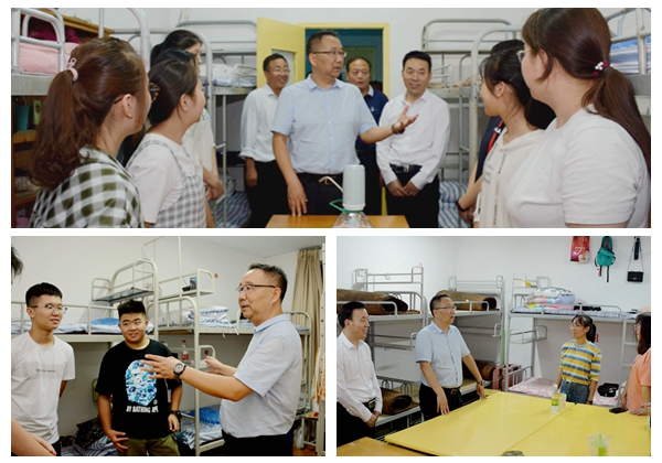 9月3日晚,校黨委書(shū)記龍治剛、黨委副書(shū)記彭虎軍和工作人員一起深入學(xué)生宿舍,看望慰問(wèn)我校2019級(jí)新生,給他們送去關(guān)懷與問(wèn)候。