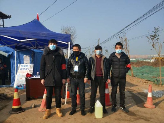 高世倫在疫情防控值守點和工作人員合影(左一為高世倫)