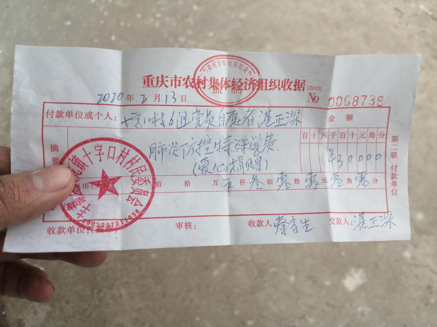 疫情暴發(fā)時(shí),湛正深同學(xué)正在重慶市豐都縣興龍鎮(zhèn)十字口村的老家,對(duì)疫情的關(guān)注格外用心的他,在得知村黨委需要志愿者后,第一時(shí)間到所在十字口村村黨委報(bào)到請(qǐng)戰(zhàn),主動(dòng)提交請(qǐng)戰(zhàn)書。他在請(qǐng)戰(zhàn)書中寫到:作為一名學(xué)生黨員,我時(shí)刻牢記著隨時(shí)準(zhǔn)備為黨和人民犧牲一切的入黨誓詞,在疫情防控關(guān)鍵的時(shí)刻,希望能夠參與到疫情防疫第一線,為防范疫情出一份力。同時(shí),湛正深還將自己兼職賺取的三百元現(xiàn)金作為特殊黨費(fèi)上交組織以做疫情防控之用。經(jīng)過當(dāng)?shù)攸h委的批準(zhǔn),湛正深同學(xué)加入“抗疫”工作小組,在做好自身安全防護(hù)的前提下,迅速投身防控一線。