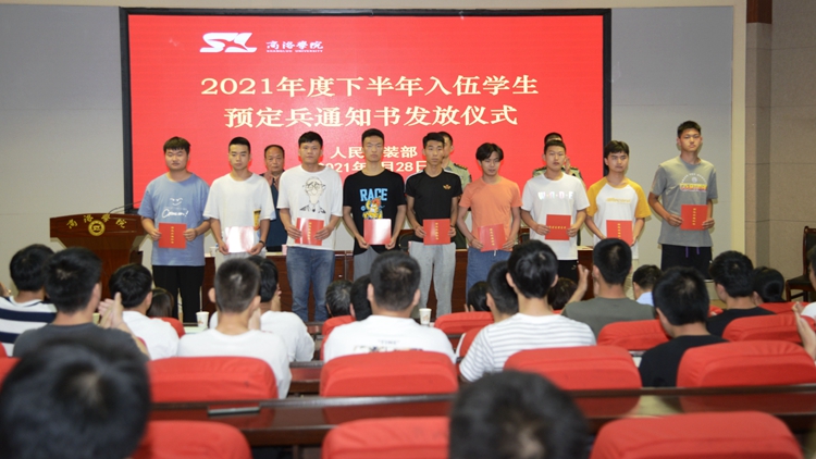 6月28日,我校舉辦了2021年度下半年入伍學(xué)生預(yù)定兵通知書發(fā)放儀式,商州區(qū)武裝部部長曹建明上校、副部長陳強中校出席會議。我校學(xué)生處處長石啟英、各二級學(xué)院學(xué)工辦主任及51名預(yù)定新兵參加了會議。會議由石啟英主持。