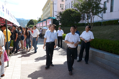 在黨政辦公室、學(xué)生處、招生就業(yè)處、保衛(wèi)處、后勤保障處等相關(guān)職能部門負(fù)責(zé)人的陪同下,范新會(huì)一行深入新生接待處、繳費(fèi)處、戶籍辦理處、軍訓(xùn)服裝發(fā)放處、學(xué)生公寓、銀行卡與通信卡辦理處等場點(diǎn),詳細(xì)檢查了各個(gè)場點(diǎn)迎新工作部署與開展情況。經(jīng)過檢查,校領(lǐng)導(dǎo)對(duì)接待新生的各項(xiàng)準(zhǔn)備工作表示滿意,并要求各單位通力合作,積極主動(dòng)、熱情周到、扎實(shí)細(xì)致做好服務(wù)工作,讓新生及家長能迅速、便捷、舒心地辦理入校手續(xù),感受到學(xué)校大家庭的溫暖。針對(duì)迎新期間校內(nèi)交通調(diào)度、衛(wèi)生清理、志愿者培訓(xùn)等工作,校領(lǐng)導(dǎo)也提出了具體要求。