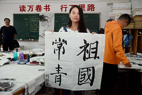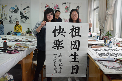 學(xué)生胡甜甜說道,書法是中國傳統(tǒng)文化的瑰寶,在祖國67華誕即將到來之際,用書法作品表達(dá)對祖國的愛,覺得很有意義,也深受教育。學(xué)生許佳妮說,作為當(dāng)代大學(xué)生,我們要認(rèn)真學(xué)習(xí),練就報(bào)效祖國的本領(lǐng),為實(shí)現(xiàn)中國夢做出自己的貢獻(xiàn)!祝祖國繁榮昌盛,美麗富強(qiáng)!