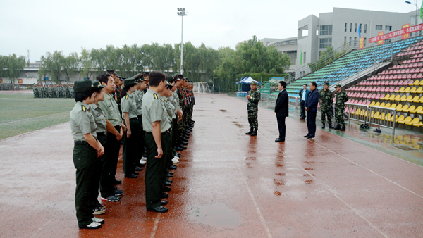9月18日,武警陜西省總隊(duì)副參謀長(zhǎng)連文生大校、武警商洛支隊(duì)支隊(duì)長(zhǎng)王平上校、武警商洛支隊(duì)政委梁棟上校一行冒雨來我校視察慰問承訓(xùn)教官與參訓(xùn)師生。黨委副書記彭虎軍陪同檢查。