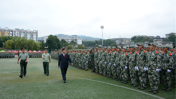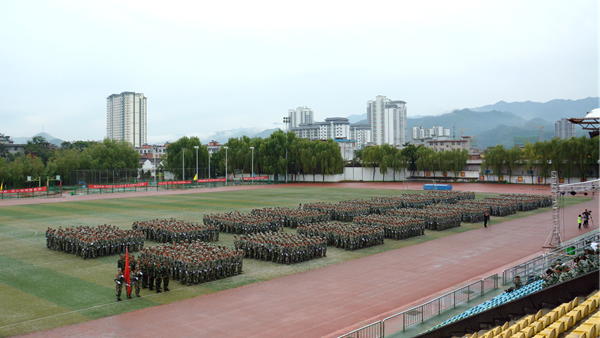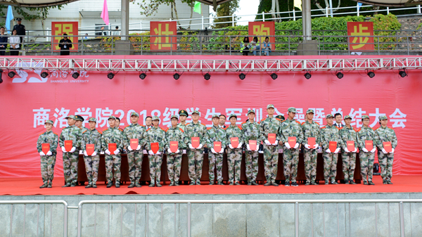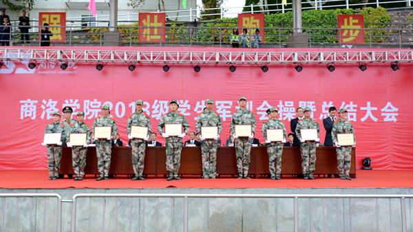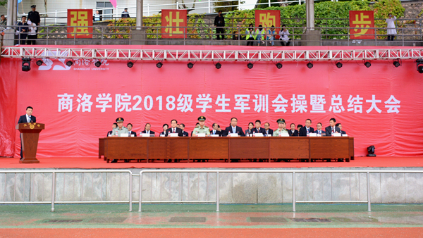 汗水書寫青春,磨練見證成長。9月20日,我校隆重舉行2018級(jí)學(xué)生軍訓(xùn)會(huì)操暨總結(jié)大會(huì),檢閱2018級(jí)學(xué)生軍訓(xùn)成果,并對(duì)軍訓(xùn)中表現(xiàn)突出的先進(jìn)集體與先進(jìn)個(gè)人進(jìn)行表彰。校領(lǐng)導(dǎo)龍治剛、范新會(huì)、魏書堂、劉寶盈、劉勇,中國人民武警部隊(duì)商洛支隊(duì)副參謀長、軍訓(xùn)團(tuán)團(tuán)長呂喆少校,中國人民武警部隊(duì)商洛支隊(duì)執(zhí)勤一大隊(duì)隊(duì)長郭偉少校出席大會(huì)。各二級(jí)學(xué)院黨政主要負(fù)責(zé)人、有關(guān)職能部門負(fù)責(zé)人、全體2018級(jí)學(xué)生及輔導(dǎo)員參加了大會(huì)。大會(huì)由黨委副書記彭虎軍主持。