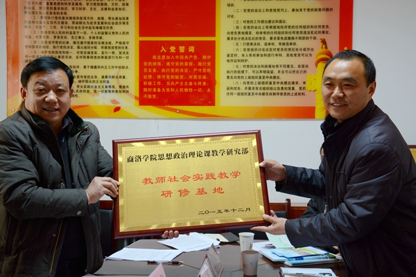 為了認真貫徹落實《商洛學(xué)院關(guān)于印發(fā)<商洛學(xué)院根植地方行動計劃實施辦法(試行)>》文件精神,切實實現(xiàn)教師進政府、進社區(qū)、進鄉(xiāng)村,不斷提高我校思政課教師深入基層、服務(wù)地方的能力,2016年1月6日,思想政治理論課教學(xué)研究部組織部分教師前往洛南縣陜南移民安置工作辦公室、洛南縣四皓中學(xué),舉行教師實踐研修基地掛牌儀式,積極開展校地合作。