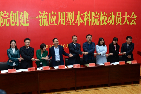 10月23日,在商洛學院創(chuàng)建一流應用型本科院校動員大會上,副校長劉寶盈代表學校與商洛市六縣一區(qū)政府、商丹園區(qū)管委會簽署《商洛市校地合作聯(lián)盟框架協(xié)議》,組建商洛市校地合作聯(lián)盟,為商洛區(qū)域經濟社會發(fā)展提供教育保障、科技支撐和智力支持。