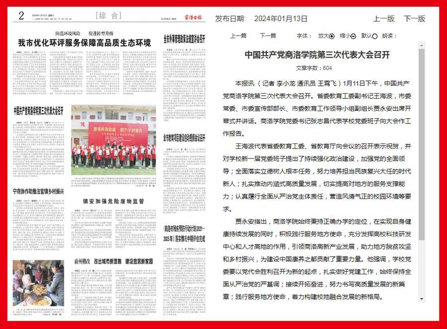 商洛日報:中國共產(chǎn)黨商洛學(xué)院第三次代表大會召開
