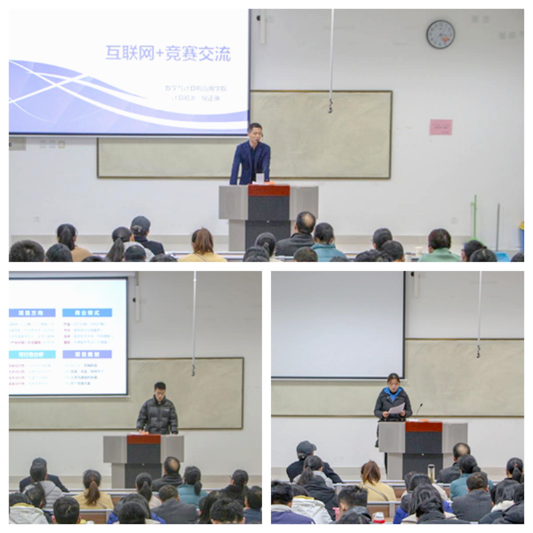 會上,第七屆“互聯(lián)網(wǎng)+”大賽陜西賽區(qū)金獎獲獎團隊指導(dǎo)教師屈正庚分享了自己指導(dǎo)“互聯(lián)網(wǎng)+”大賽的經(jīng)驗,介紹了如何“選項目、定團隊”“做計劃、寫摘要”“理邏輯、備路演”,及撰寫創(chuàng)業(yè)計劃書、制作路演PPT和一分鐘視頻、路演答辯的方法和技巧;第七屆“互聯(lián)網(wǎng)+”大賽陜西賽區(qū)金獎獲獎團隊負責人、數(shù)計學(xué)院學(xué)生劉旭,銀獎獲獎團隊負責人、數(shù)計學(xué)院學(xué)生劉垚分別從大賽項目選題、團隊組建、產(chǎn)品研發(fā)、項目推廣、項目實施和打磨、備賽技巧等方面分享了團隊參賽經(jīng)驗,及團隊在備賽過程中同心協(xié)力、攻堅克難的奮斗歷程,鼓勵同學(xué)們積極參與到“互聯(lián)網(wǎng)+”大賽中,勇于探索,積極進取,在比賽中增長智慧才干,錘煉意志品質(zhì),用青春書寫無愧于時代的華彩篇章。
