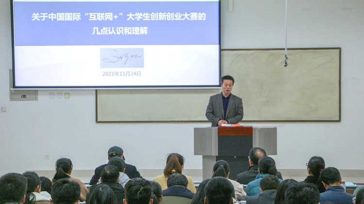 高擴昌作了題為《關(guān)于中國國際“互聯(lián)網(wǎng)+”大學(xué)生創(chuàng)新創(chuàng)業(yè)大賽的幾點認識和理解》的專題報告,對“互聯(lián)網(wǎng)+”大賽政策、學(xué)科前沿及如何備賽進行了詳細的解讀,介紹了我校歷年參賽情況,分享了自己在組織參與“互聯(lián)網(wǎng)+”大賽過程中的心得體會與寶貴經(jīng)驗。