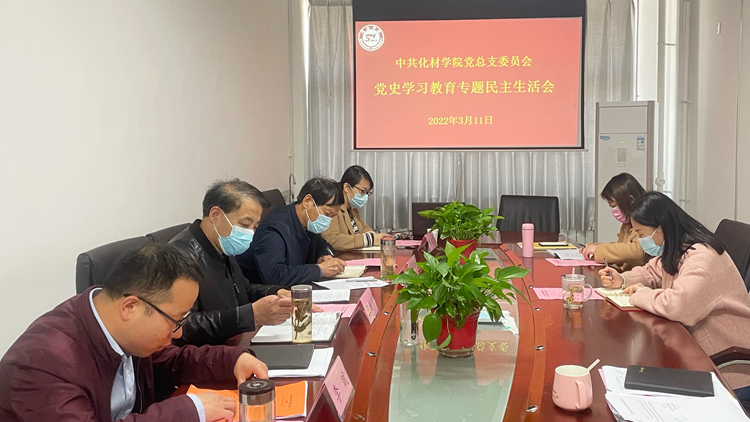 3月11日,化材學(xué)院在丹江校區(qū)4-316會議室召開黨史學(xué)習(xí)教育專題民主生活會,黨委委員、副校長王新軍到會指導(dǎo),學(xué)院黨總支委員、副處級以上干部、科級黨員干部參加會議。
