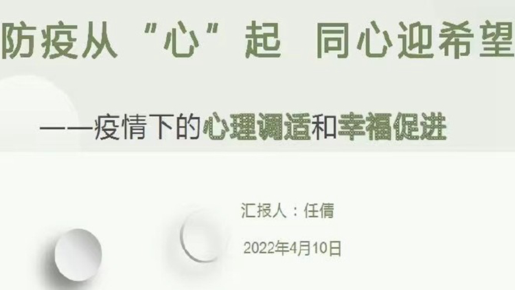 為舒緩疫情防控期間在校生焦慮情緒,助力做好心理調(diào)適和學(xué)習(xí)生活規(guī)劃,4月10日,經(jīng)管學(xué)院輔導(dǎo)員、國(guó)家三級(jí)心理咨詢師任倩通過(guò)釘釘平臺(tái)為學(xué)院師生舉辦了以“防疫從心起 同心迎希望 ——疫情下的心理調(diào)適和幸福促進(jìn)”為主題的線上主題講座。