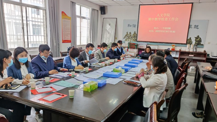 5月9日下午,黨委副書記彭虎軍一行9人深入人文學(xué)院進(jìn)行期中教學(xué)專項(xiàng)檢查。人文學(xué)院黨政領(lǐng)導(dǎo)班子成員、督導(dǎo)組成員、各系負(fù)責(zé)人以及部分教師代表參加專項(xiàng)檢查座談會(huì)。院長張文諾作了專題匯報(bào)并陪同檢查了相關(guān)教學(xué)資料。