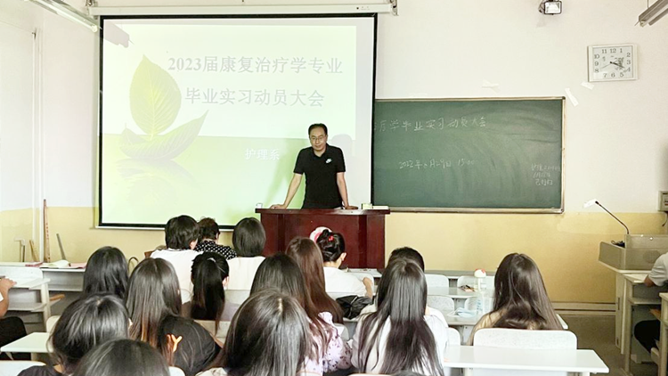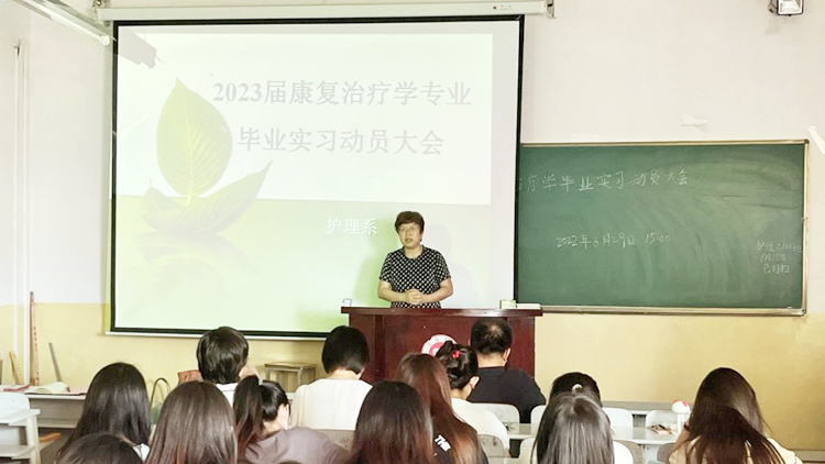 為切實保障2023屆康復(fù)治療學(xué)專業(yè)學(xué)生畢業(yè)實習(xí)工作有序推進,6月28日,健康管理學(xué)院召開康復(fù)治療學(xué)專業(yè)2023屆學(xué)生畢業(yè)實習(xí)動員大會。健康管理學(xué)院院長郭耀東、黨委書記魯綿茸,學(xué)工辦負責(zé)人、教學(xué)秘書、康復(fù)治療學(xué)專業(yè)全體教師及2023屆學(xué)生代表參加會議。