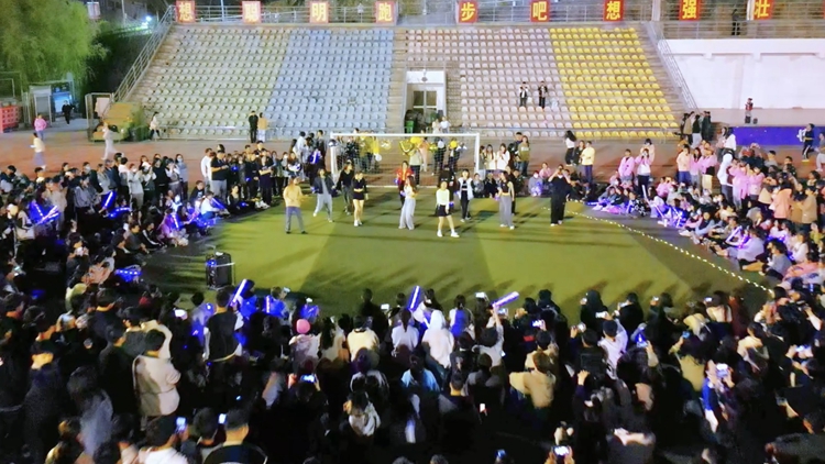 大學(xué)生藝術(shù)團攜手音樂協(xié)會在操場舉辦了“‘鋒’華正茂恰少年”主題活動,熱烈的舞蹈《拉丁》讓現(xiàn)場氣氛迅速活躍起來。一曲《烏梅子醬》表達出甜蜜酸澀的青春戀愛味道,歌曲《遇到》述說在青春年華經(jīng)歷的美好故事,《現(xiàn)代舞串燒》讓人心潮澎湃……豐富多彩的節(jié)目為現(xiàn)場觀眾帶來了一場視覺與聽覺的盛宴。不同于以往單一的表演形式,此次活動還穿插了游戲互動環(huán)節(jié),你放我猜的小游戲激發(fā)了觀眾們的熱情,在倒數(shù)聲中觀眾迅速搶麥回答,現(xiàn)場氣氛瞬間被推向高潮,贏得一片歡呼吶喊聲。
