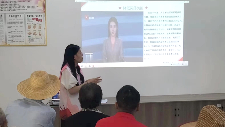 活動現(xiàn)場,志愿者代表楊婷、曾思敏結合具體事例、數(shù)據(jù)和視頻對老人關心的城鄉(xiāng)居民養(yǎng)老保險政策進行宣講,陳塬街道辦事處人社所工作人員向村民發(fā)放政策宣傳單,一對一講解城鄉(xiāng)居民養(yǎng)老保險政策。志愿者和工作人員耐心細致地為村民答疑解惑,引導群眾算好“明白賬”,充分理解繳費政策、積極參保,共享黨的惠民政策。