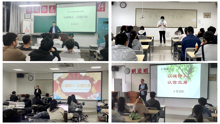 開好主題班會,將誠信轉化為行動自覺。5月17日至2月25日,學院各班主任以“以誠待人以信立身”為主題,圍繞班級管理、學風建設、求學資助、網(wǎng)絡安全等內容組織召開主題班會,宣傳國家生源地助學貸款及其他資助政策,普及金融安全知識,引導全體學生在思想上高度重視班風、學風建設,遵守課堂和考試紀律,遵守國家法律法規(guī)和學校各項規(guī)章制度,養(yǎng)成良好的行為習慣,有效地將誠信教育轉化為大學生的思想自覺和行為自覺。