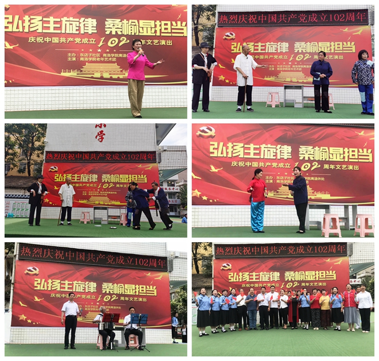 為慶祝建黨102周年,展示我校離退休黨員干部愛黨之情、向黨之心,激勵廣大老同志不忘初心跟黨走,7月1日上午,離退休職工工作處聯(lián)合東店子社區(qū)在社區(qū)院內(nèi)開展“弘揚主旋律,桑榆顯擔(dān)當(dāng)”文藝演出。