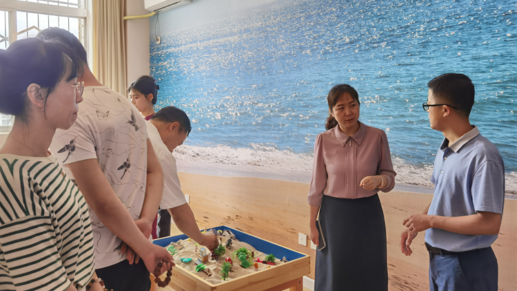 姚馨一行實(shí)地考察了我校省級(jí)心理健康教育中心,參觀(guān)了解了健康學(xué)院市級(jí)智慧心理研究與服務(wù)中心建設(shè)情況。在專(zhuān)業(yè)老師的指導(dǎo)下,體驗(yàn)了認(rèn)知神經(jīng)心理實(shí)驗(yàn)室、師范技能實(shí)訓(xùn)室相關(guān)心理訓(xùn)練器材設(shè)備,部分陪同人員還完成了首次“心理體檢”。