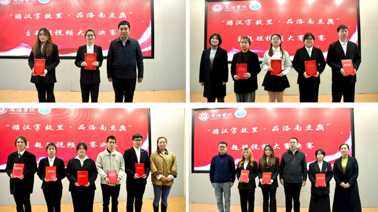 12月1日,商洛直播產(chǎn)業(yè)研究院以“游漢字故里 品洛南豆腐”為主題的首屆主題短視頻大賽決賽在圖書(shū)館一樓報(bào)告廳順利舉行。洛南縣統(tǒng)戰(zhàn)部部長(zhǎng)楊新良、洛南縣文化和旅游局副局長(zhǎng)馮娜、商洛學(xué)院教務(wù)處處長(zhǎng)王怡、商洛直播產(chǎn)業(yè)研究院執(zhí)行院長(zhǎng)房琳、商洛學(xué)院人文學(xué)院新聞傳播系主任逯祺、商洛市電子商務(wù)平臺(tái)負(fù)責(zé)人譚曉奔等6位校內(nèi)外專家擔(dān)任評(píng)委。經(jīng)過(guò)激烈角逐,人文學(xué)院“對(duì)對(duì)對(duì)隊(duì)”和經(jīng)管學(xué)院“豆腐三大隊(duì)”兩個(gè)團(tuán)隊(duì)獲得大賽一等獎(jiǎng)。