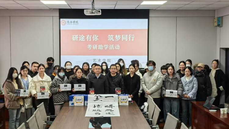 為助力考研學(xué)子在沖刺階段保持良好狀態(tài),鼓舞斗志,12月6日,藝術(shù)學(xué)院開展了“研途有你·筑夢同行”考研助學(xué)活動(dòng)。藝術(shù)學(xué)院黨委書記廉明、全體輔導(dǎo)員及2024屆考研學(xué)子共同參加了本次活動(dòng)。