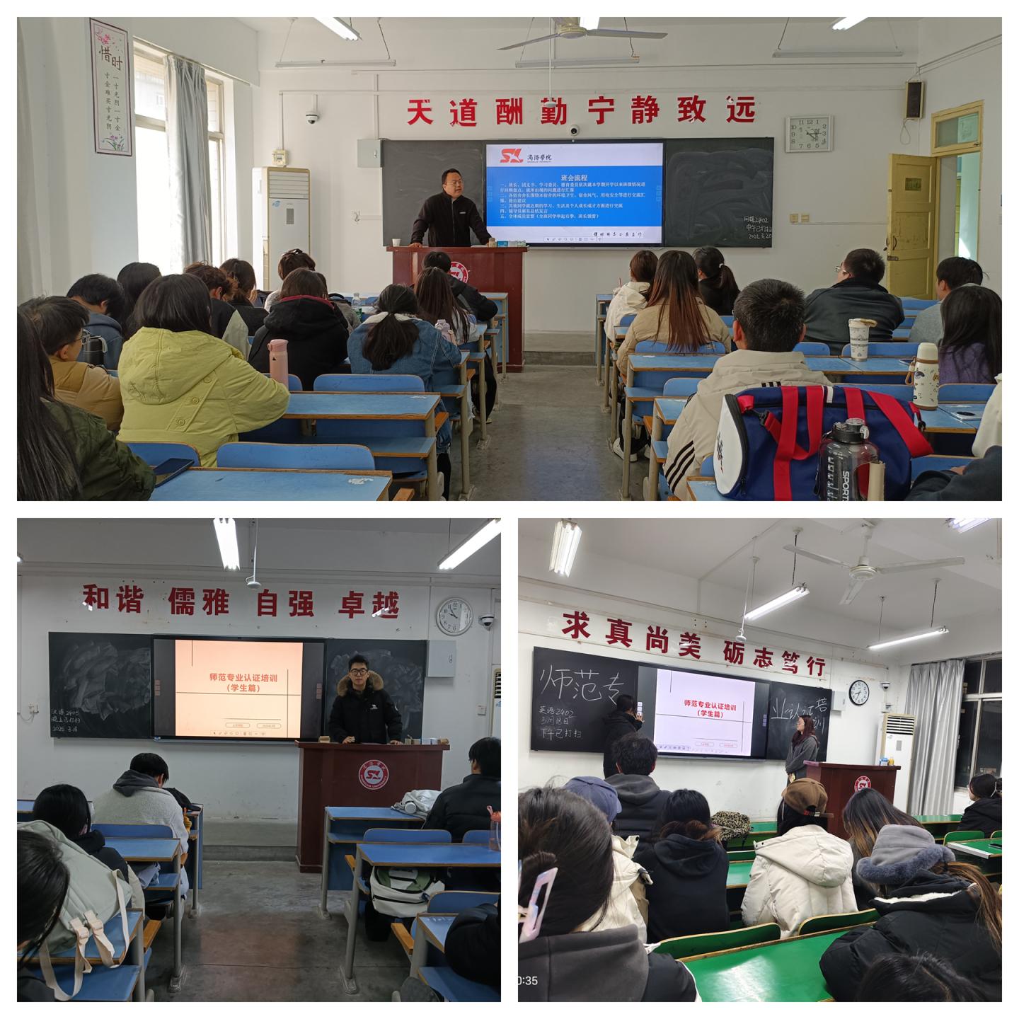 培訓(xùn)中,對(duì)低年級(jí)學(xué)生著重普及了師范專業(yè)認(rèn)證的基本概念、重要意義和核心要求,幫助學(xué)生樹(shù)立正確的學(xué)習(xí)目標(biāo)和職業(yè)發(fā)展方向。對(duì)于高年級(jí)學(xué)生,聚焦于認(rèn)證標(biāo)準(zhǔn)下的專業(yè)能力提升和實(shí)踐應(yīng)用,幫助學(xué)生將所學(xué)知識(shí)轉(zhuǎn)化為實(shí)際教學(xué)能力,更好地滿足未來(lái)教育工作的需求。各年級(jí)還開(kāi)展了“師范認(rèn)證大家談”活動(dòng),學(xué)生們紛紛表示,師范認(rèn)證各項(xiàng)標(biāo)準(zhǔn)正是對(duì)他們教學(xué)基本功、育人能力的全面檢驗(yàn),大家將以認(rèn)證為契機(jī),主動(dòng)提升專業(yè)技能,展現(xiàn)人文學(xué)院師范生的風(fēng)采。
